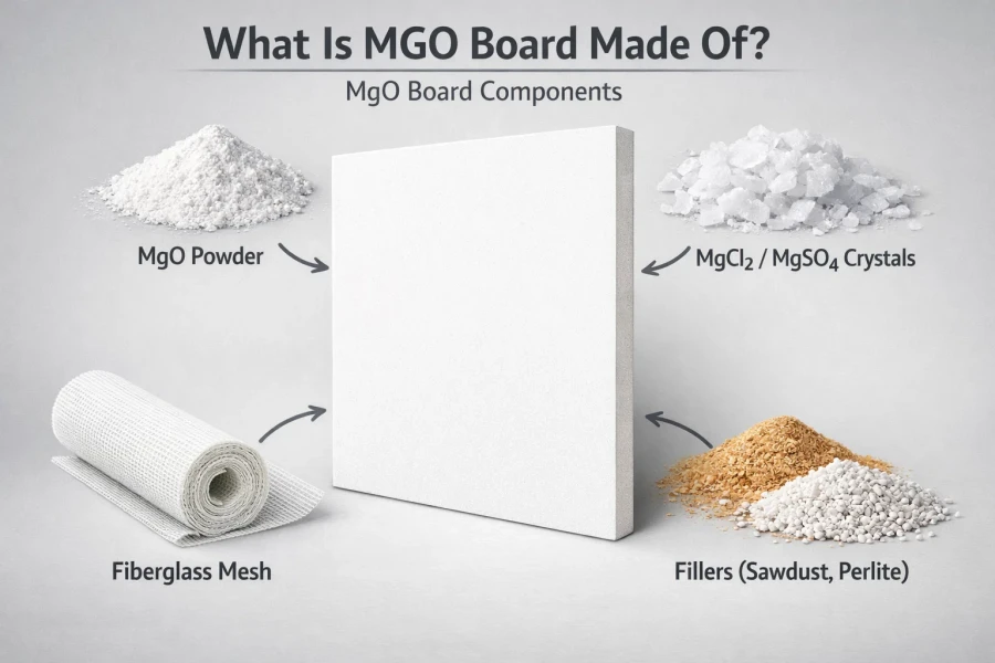 Discover what an MgO board is made of, including its core binder, activators, fillers, and reinforcement. Learn key raw materials and components.