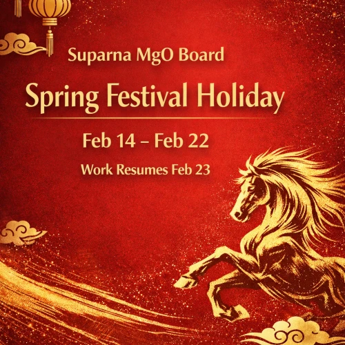 SUPARNA is a trusted magnesium oxide board (MgO board) manufacturer in China with over 20 years of experience. We provide fireproof, moisture resistant, and eco-friendly building boards for walls, ceilings, subfloors, and modular structures. Our MgO panels are ideal for both commercial and residential applications.